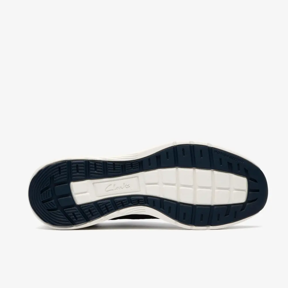 • Breathable navy engineered knit upper