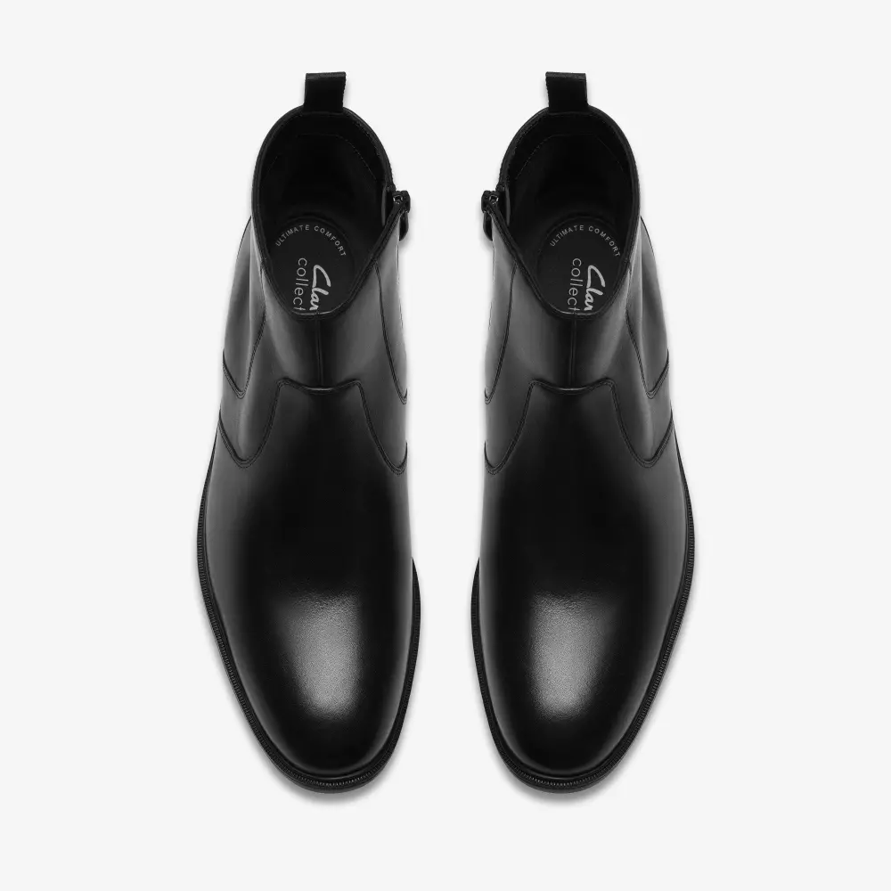 Mens Steadwell Zip Black Leather Dress Boots