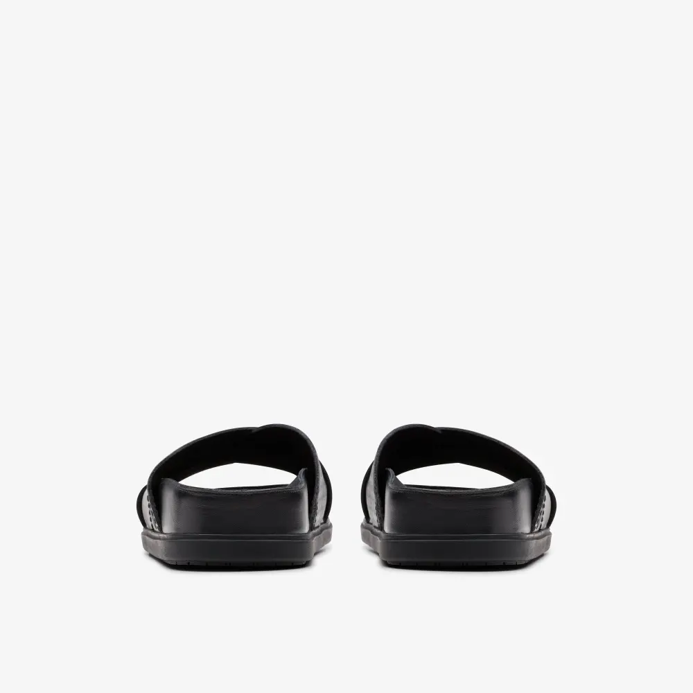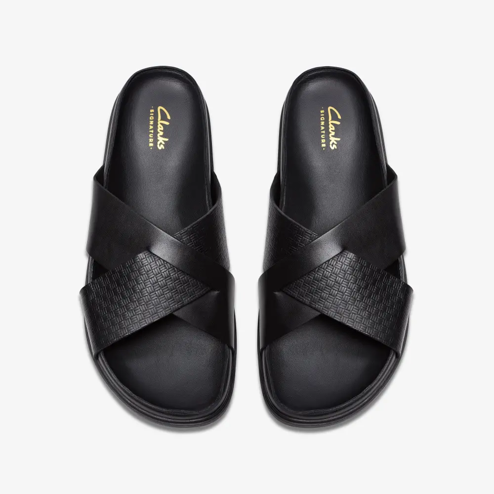 Mens Torford Cross Black Leather Flat Sandals