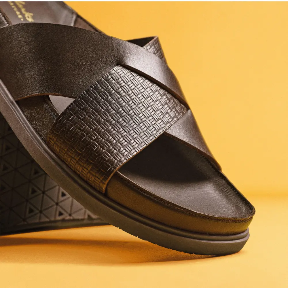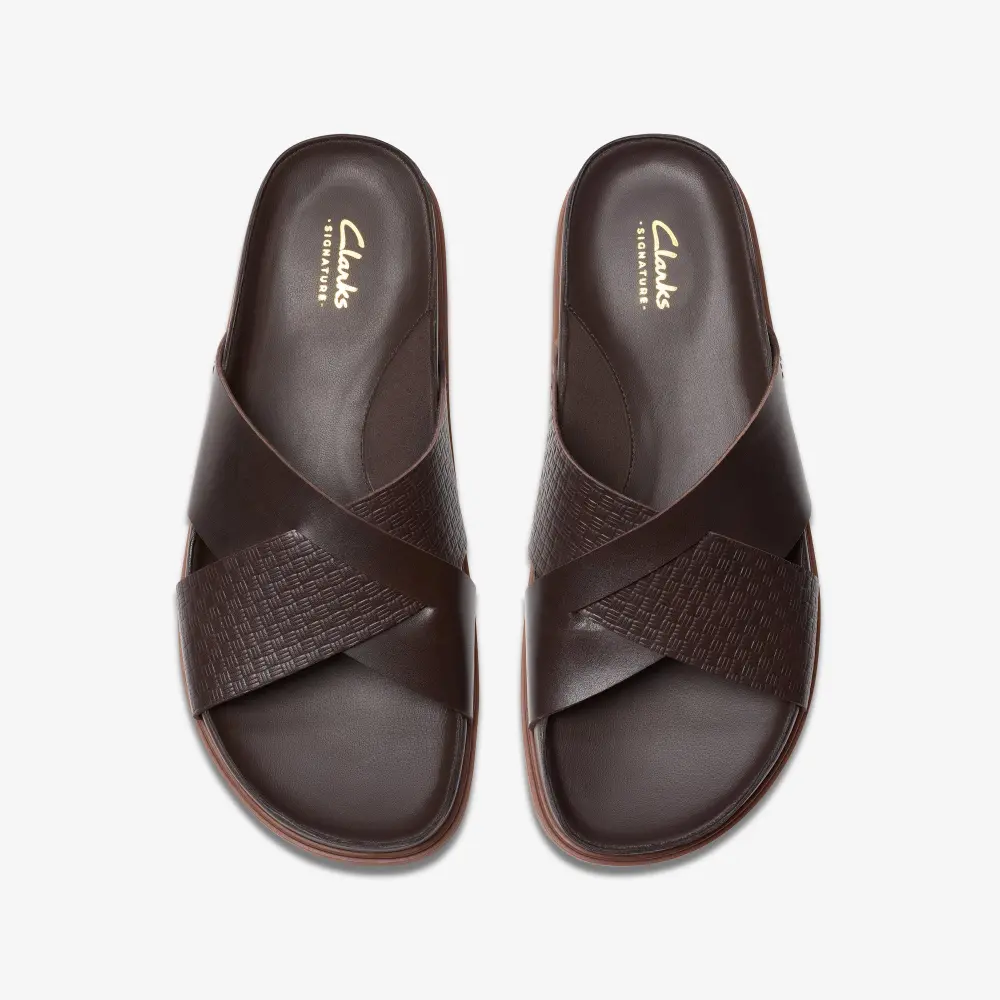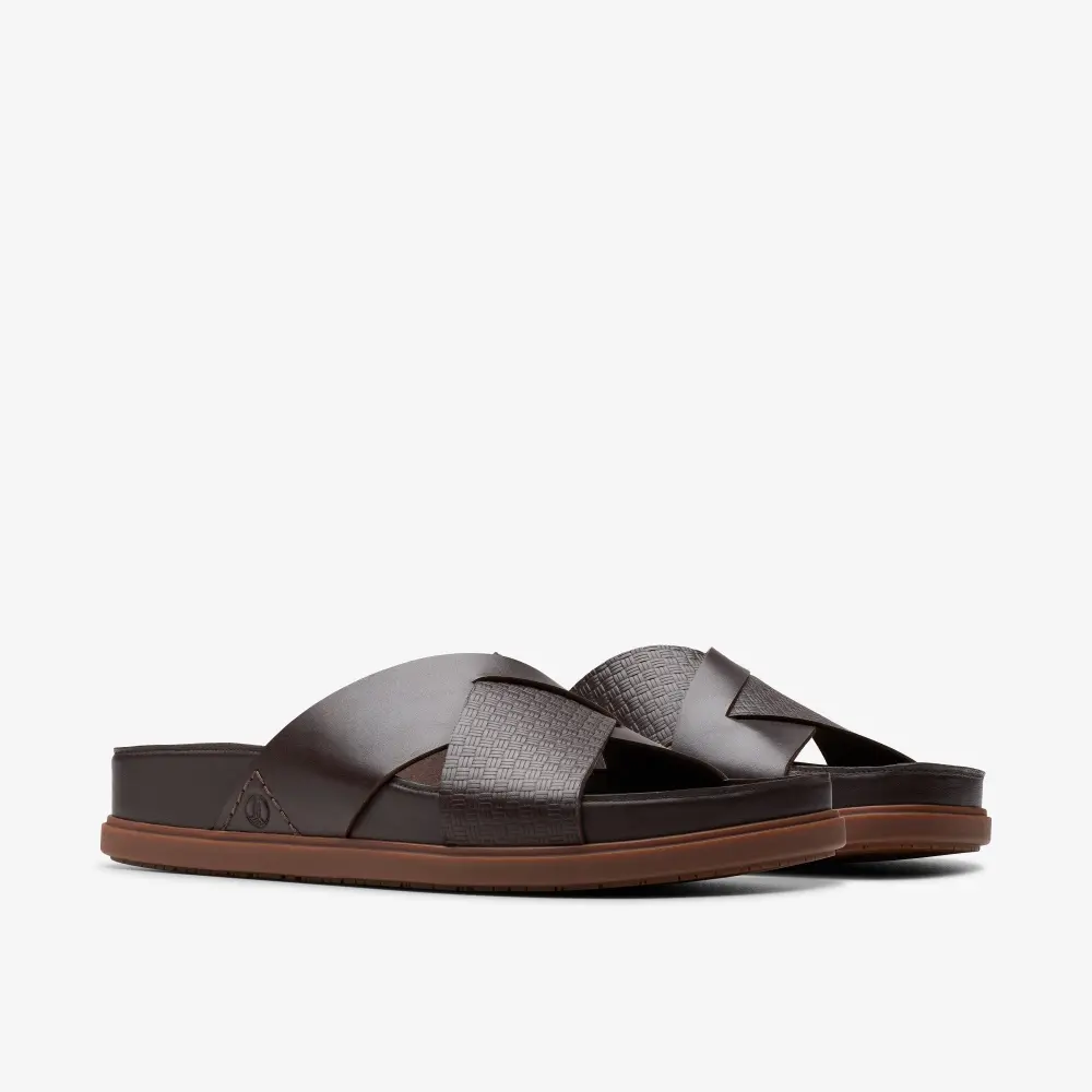 Mens Torford Cross Brown Leather Flat Slide Sandals