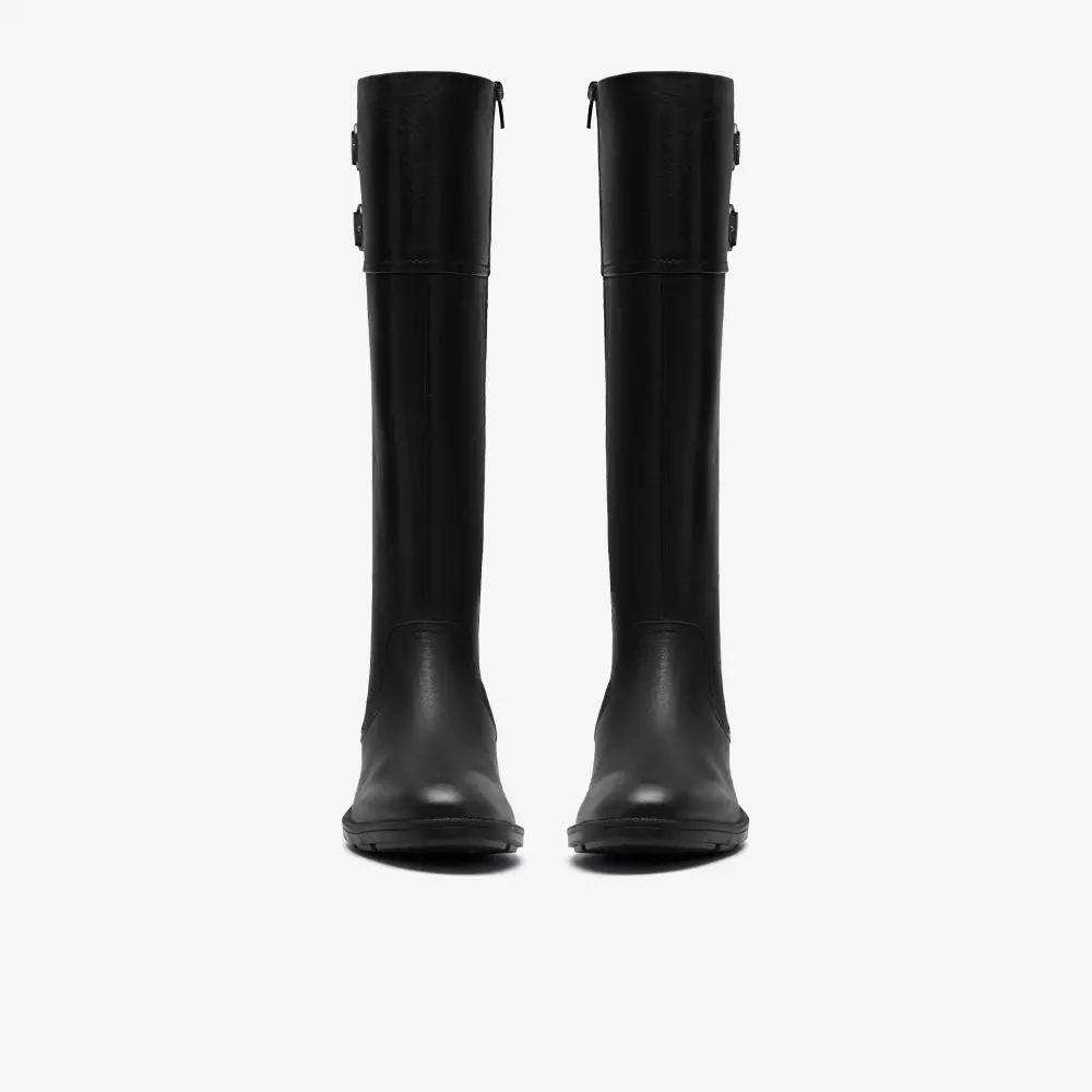 - Metal side zip combines with elastic stretch panels to provide easy foot entry