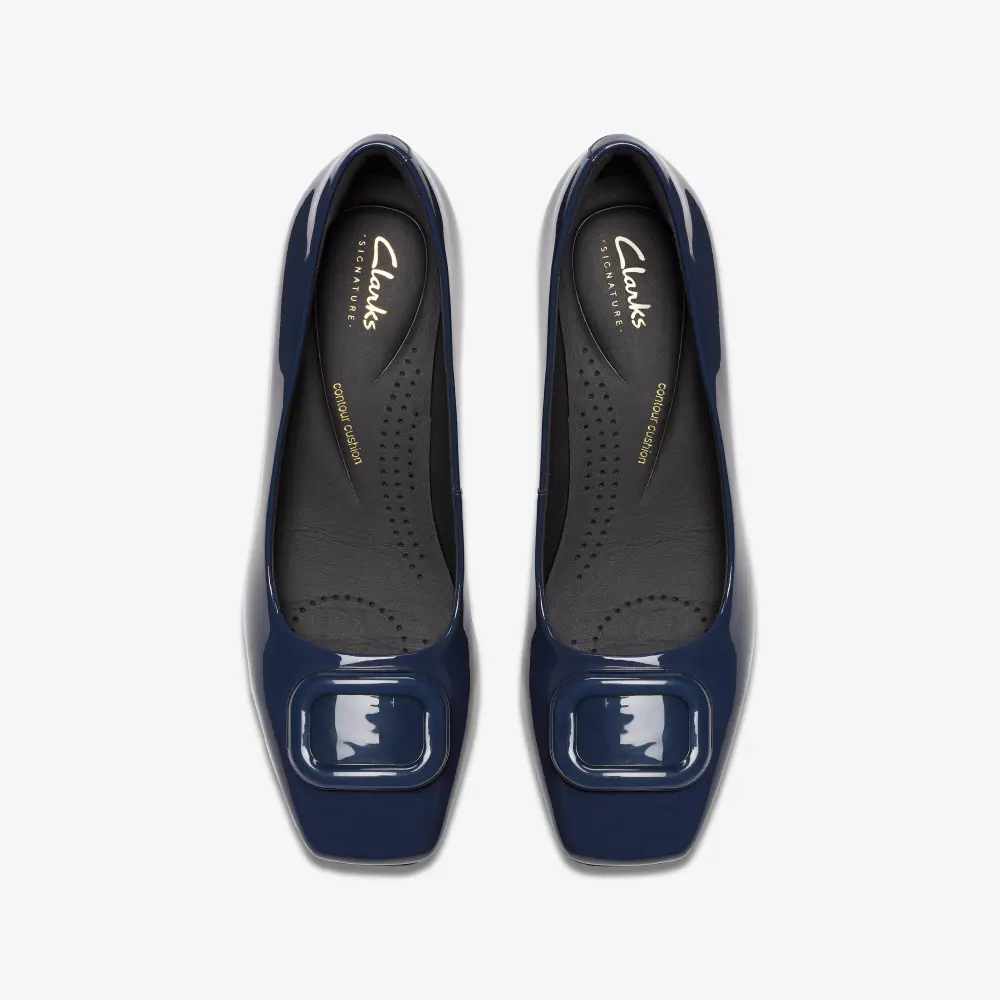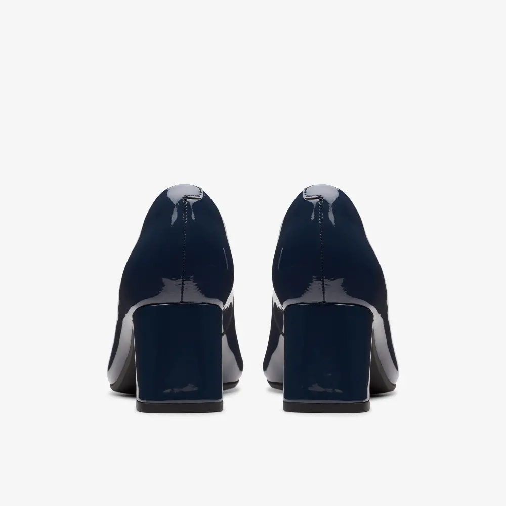 Fernie Trim combines sleek modern styling with premium materials, transitioning effortlessly from the office to smart-casual occasions. Crafted from glossy patent leathers, this profile features a block heel for a perfect balance of height and ease. Underfoot, our signature Contour Cushion footbed delivers lasting comfort, while a flexible rubber sole promotes comfortable movement, step after step.