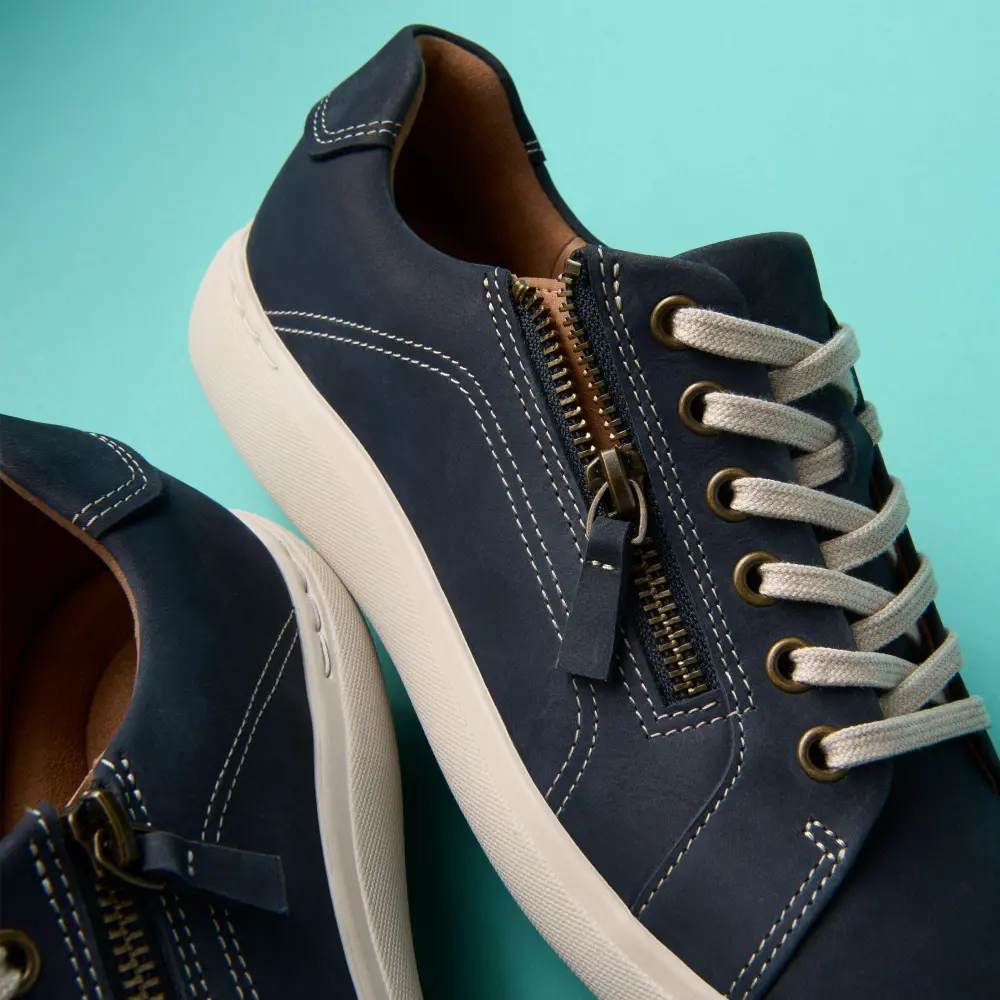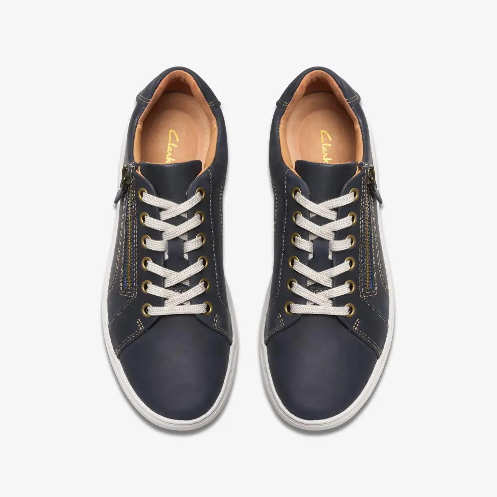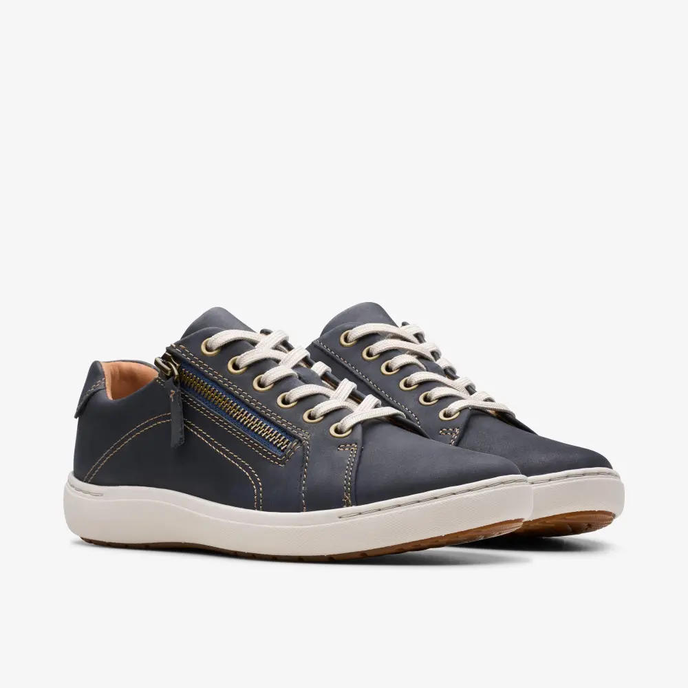 Stay light on your feet with the Nalle Lace. Supple navy nubuck uppers bring sports-inspired style to Clarks' iconic craftmanship, resulting in a contemporary sneaker that's ideal for a modern life. Our supportive Contour Cushion footbed combines with a high-grip rubber sole for underfoot comfort on those busy days.