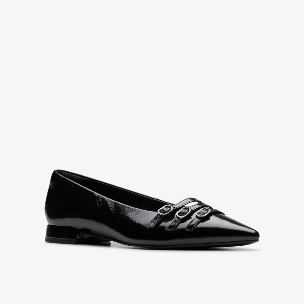 Women’s Sensa15 Strap Black Leather Ballet Flats
