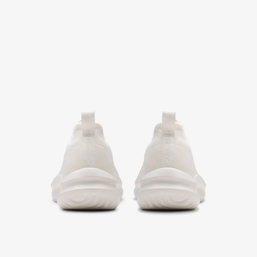 - Soft, breathable white fabric upper