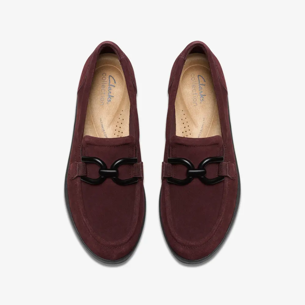 - Premium plum suede upper with hardware detailing to the front